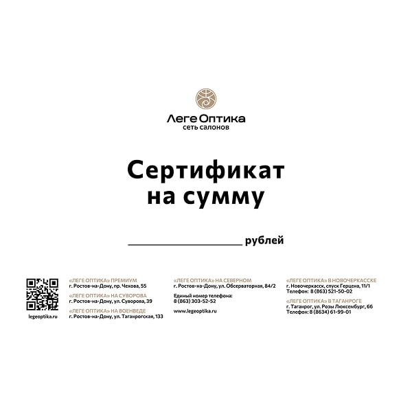 - Номинал сертификата — любая сумма от 1 000 до 1 000 000 рублей. Можно подобрать под любой повод и бюджет.